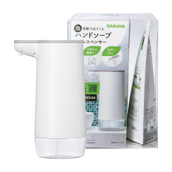 サラヤの泡ハンドソープに複数対応した自動で泡が出るハンドソープディスペンサー。 インテリアに馴染むシンプルデザインで、グッドデザイン賞受賞。 狭い水回りにも置きやすいコンパクトなサイズで場所を選ばず置いていただけます。