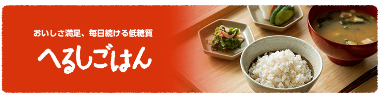おいしく低糖質なごはんを食べたいあなたに。 「へるしごはん」は白米を控えている人に食事をたのしんでほしいという思いから作られたカロリー・糖質を抑えたごはんシリーズです。 白米を置き換えるだけで簡単ヘルシーにお召し上がりいただけます。