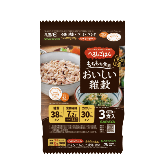 白米タイプの「へるしごはん」に加え、食物繊維量を更に増やし食べ応えをアップした雑穀タイプの「へるしごはんおいしい雑穀」も!お好みに合わせおたのしみいただけます。